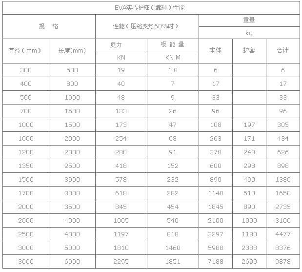 青岛澳润达泡沫填充护舷(靠球)技术参数表
